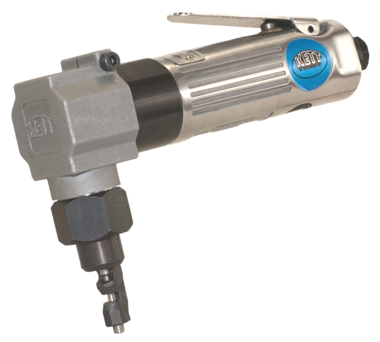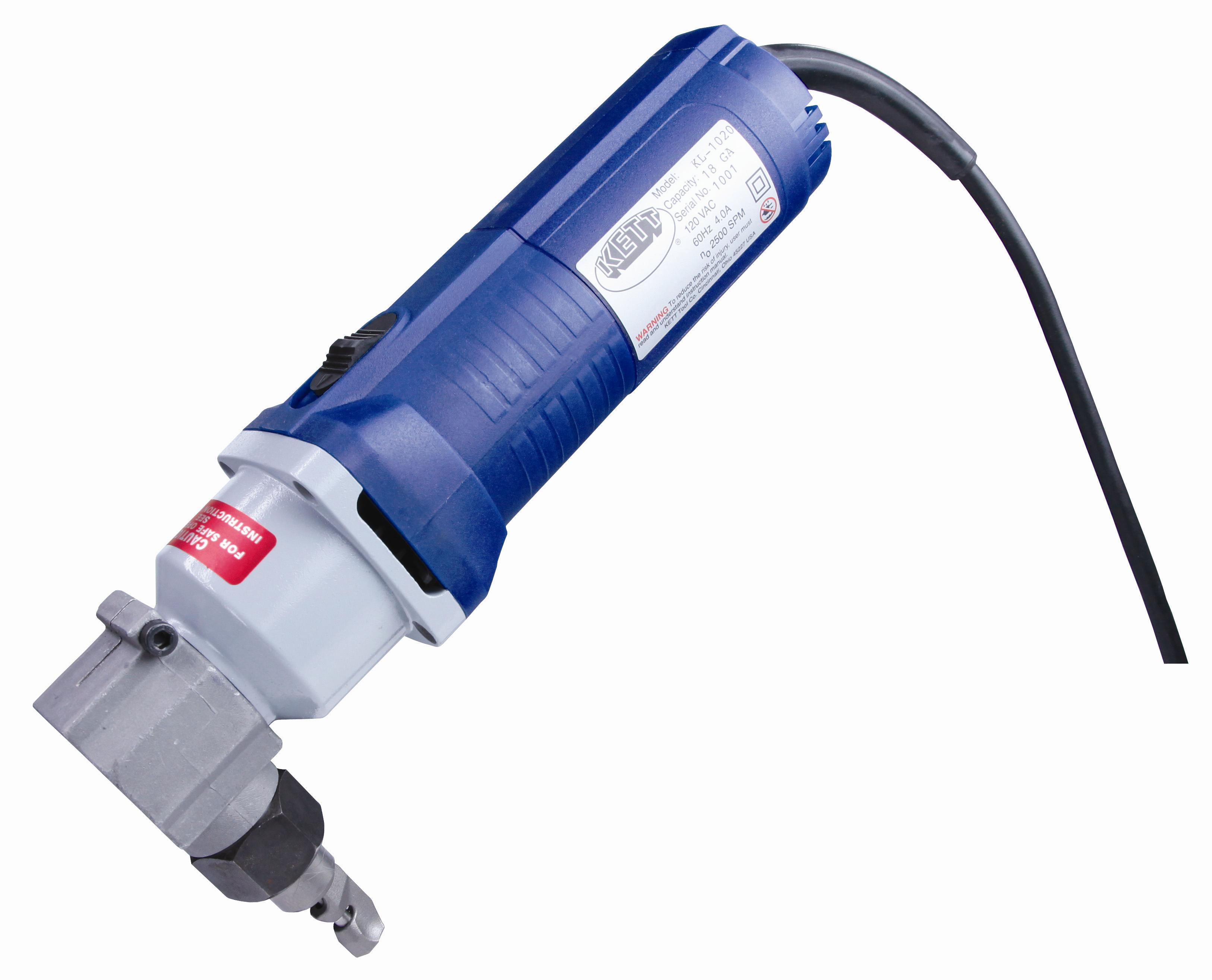 The 1020 nibbler attachment cuts intricate curves in 18 gauge C.R. mild steel at 40 inches per minute. The nibbler head cuts straight, left or right with unique swivel punch and die assembly. It can be locked in any 360 degree position. It cuts a clean, even line at 3/16" wide. (Punch and die Kit #110)